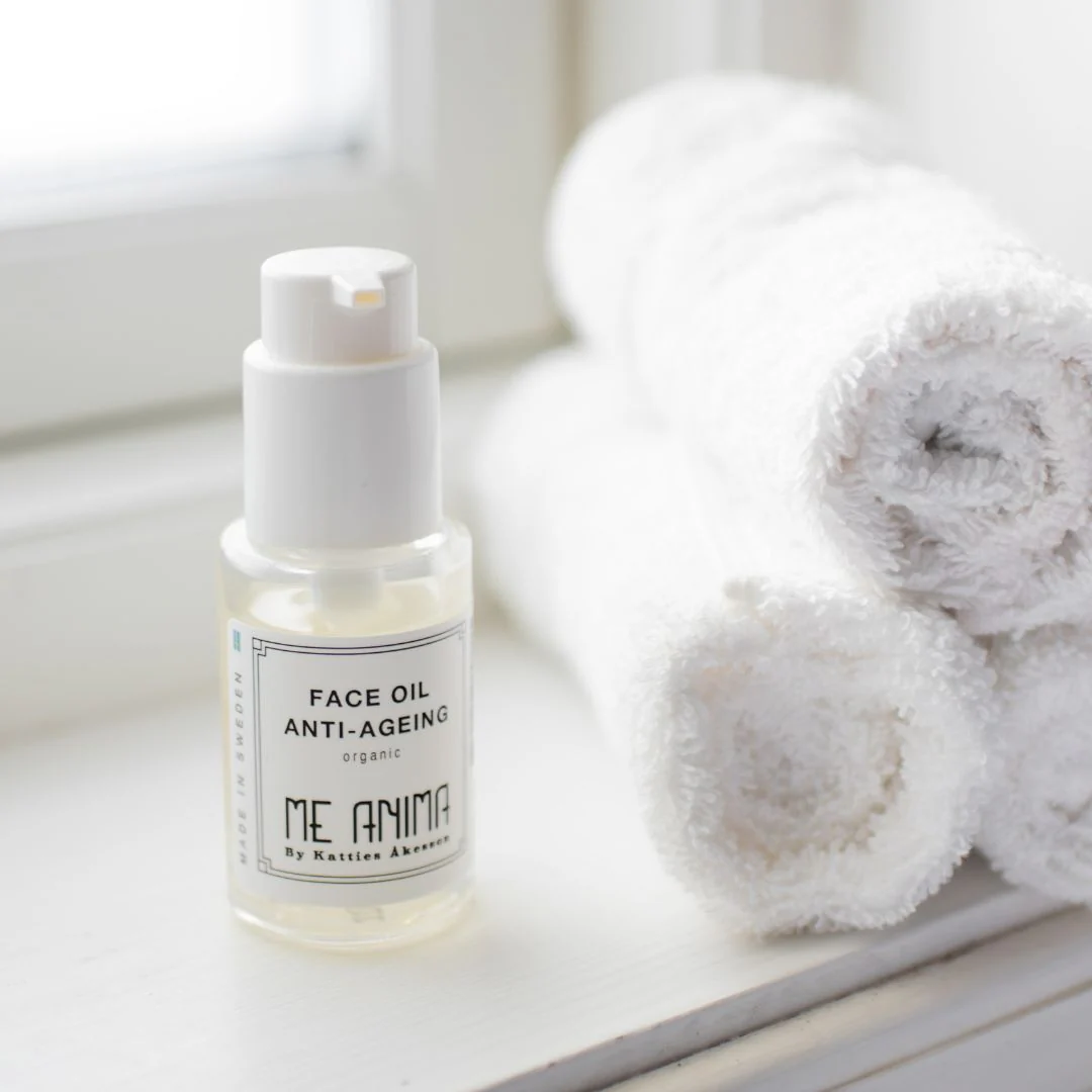 Face Oil Anti-Ageing Organic, är en vegansk och ekologisk ansiktsolja som hjälper huden att bibehålla fukt och fett. Oljan är perfekt för huden som behöver aktivera cellförnyelse och innehåller endast naturliga råvaror från växtriket. Oljan förebygger rynkor, är mjukgörande, ger huden ett fint lyster och boostar huden med näring. Den hjälper även huden att bibehålla sin naturliga spänst och elasticitet, och kallas lite snällt för “anti-tant-oljan”.