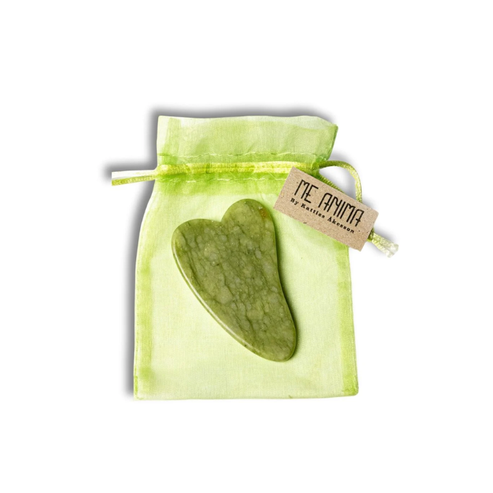 Gua Sha Serpentin Hjärta, används för att massera ansikte, hals, nacke och dekolletage. Gua sha-kristallens material och utformning är skonsam och effektiv. Den är även mjuk och len för huden. Hjärtformen vilar behändigt i din hand och är enkel att vinkla för att komma åt alla delar i ansiktet. Gua Sha Serpetin Hjärta passar även dig som inte är van att använda kristallen eftersom den är lätthanterlig. För att få den bästa behandlingen och uppnå ett fint resultat, ska dragen vara lätta, mjuka och smeksamma.